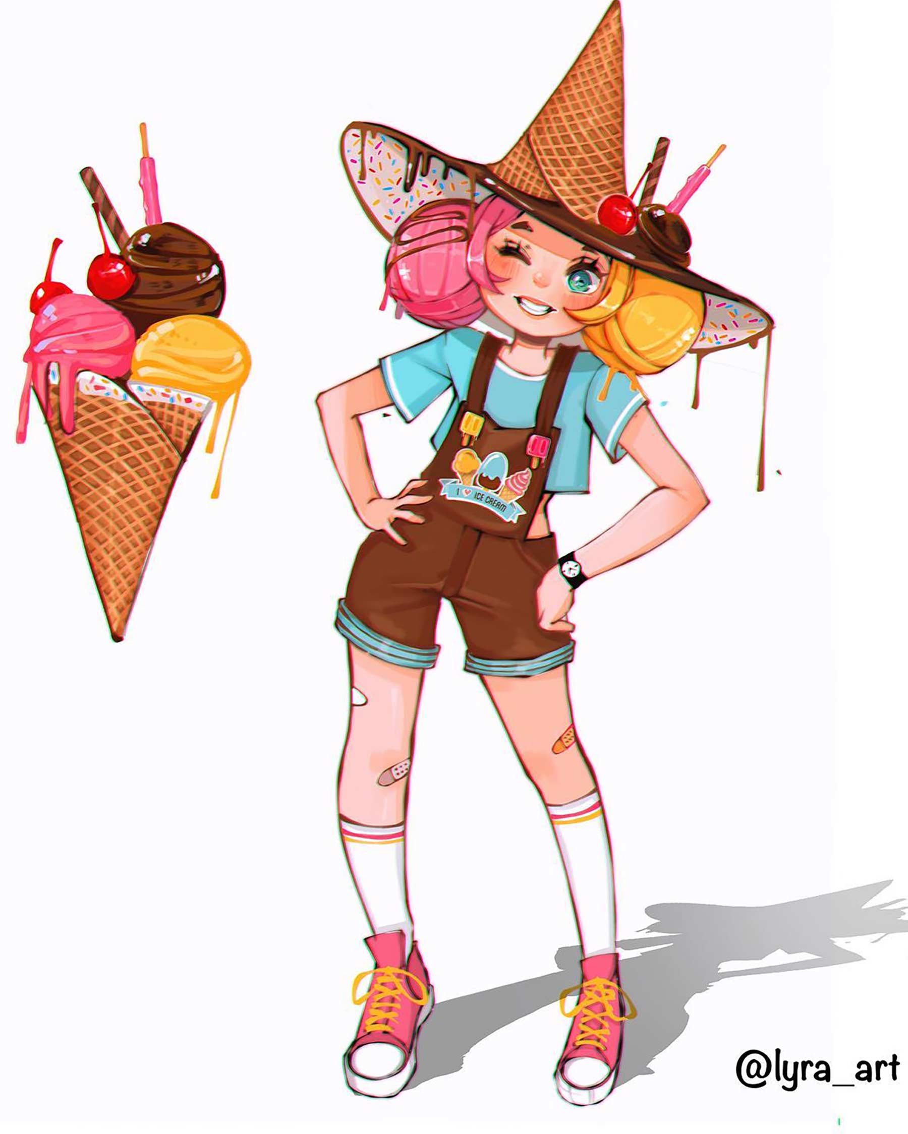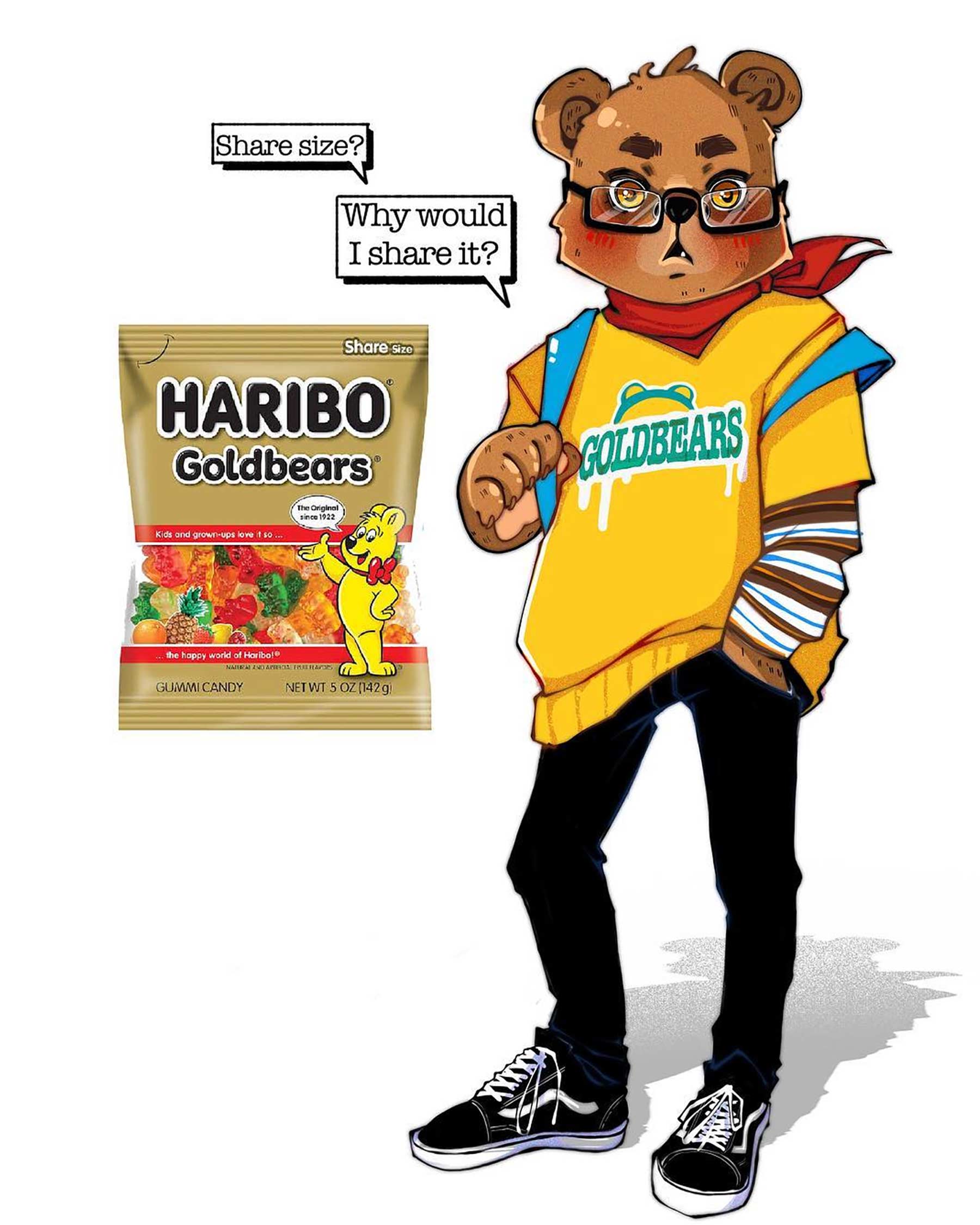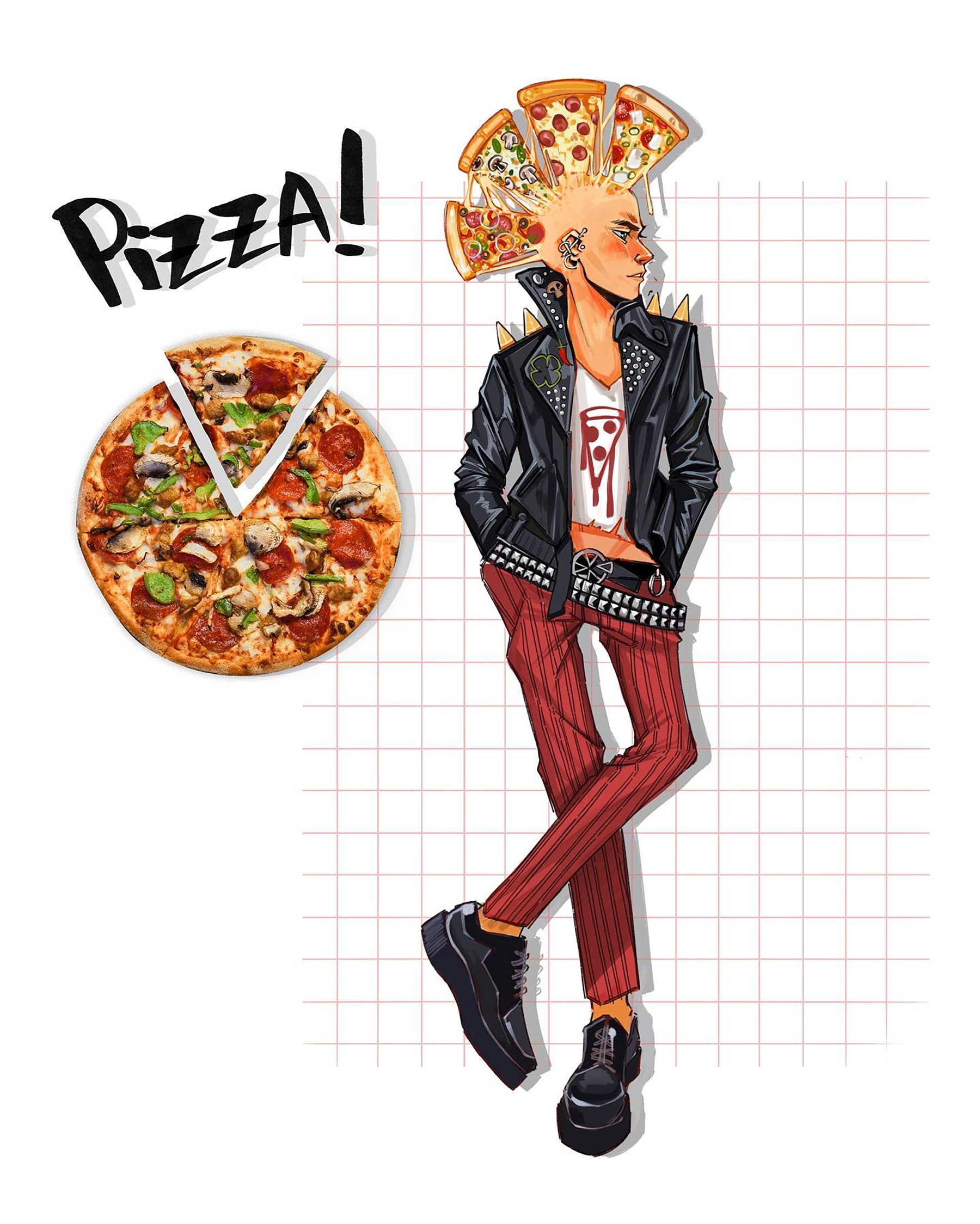 Lyra Rei aus Istanbul ist eigentlich als Psychiaterin tätig. Aber abends wird sie zur Künstlerin und erstellt farben- wie lebensfrohe Motive, egal, ob analog mit Wasserfarbe oder digital am Tablet. Jüngst hat sie eine Reihe erstellt, in der sie bekannte Snacks (mal Süßigkeiten, mal klassischere Mahlzeiten) als Figuren darstellt. Ob „Haribo Hipster“ oder „Pizza Punk“ – Food Characters, quasi. Durchaus gelungen, hier einige der schmackhaften Designs: