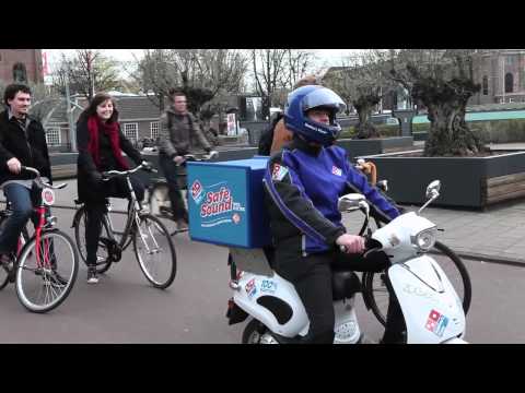 „To improve road safety Domino’s Pizza the Netherlands introduces a human engine sound on their silent electrical scooters.“