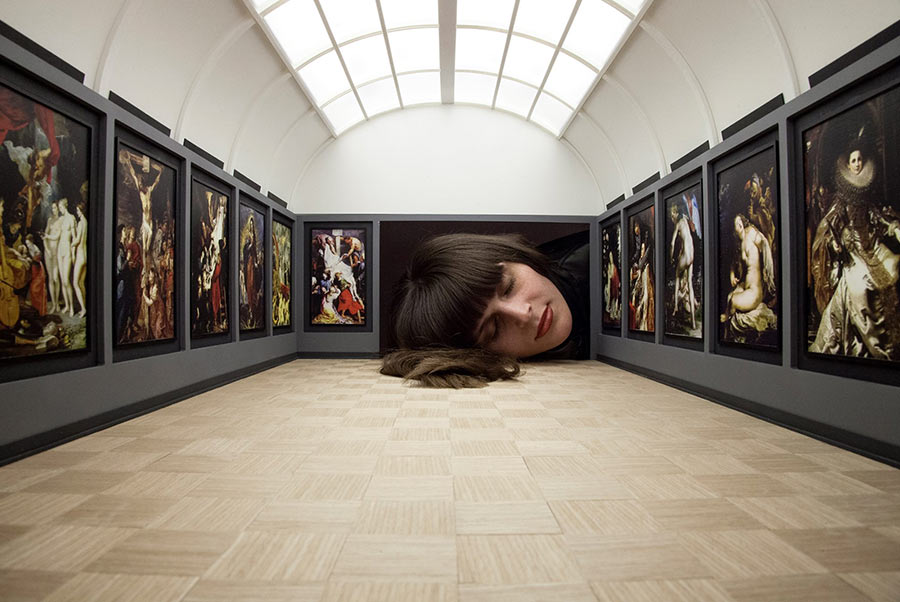 Ganz und gar nicht kopflose Kunst gibt es bei der tollen Installation „Put Your Head into Gallery“ zu sehen. Der georgische Künstler Tezi Gabunia lässt Betrachter zu Teilen seiner Kunst werden. Steckt man den Kopf in die kleinen Museums-Nachbauten von der „Saatchi Gallery“ (Tezi Gabunia), „The Louvre“ (Rubens), dem „Tate Modern“ (Hirst) und der „Gagosian Gallery“ (Liechtenstein) kommt man sich ein bisschen wie ein Riese vor.