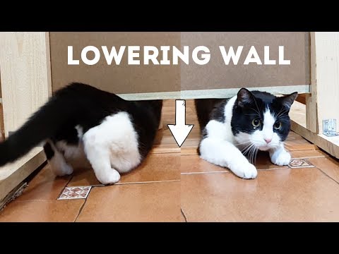 „The cat has a passage under the wall, but with each attempt the wall goes down. It’s getting harder and harder for the cat to pass it. Will the cat’s body go into a liquid state? Let’s watch and check!“