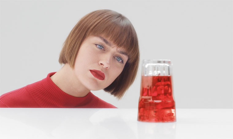 „In each episode the cool and collected hero is faced with finding out the solution for turning the upside-down-glass back into its drinking position — and she does, without spilling a drop of Campari of course.“