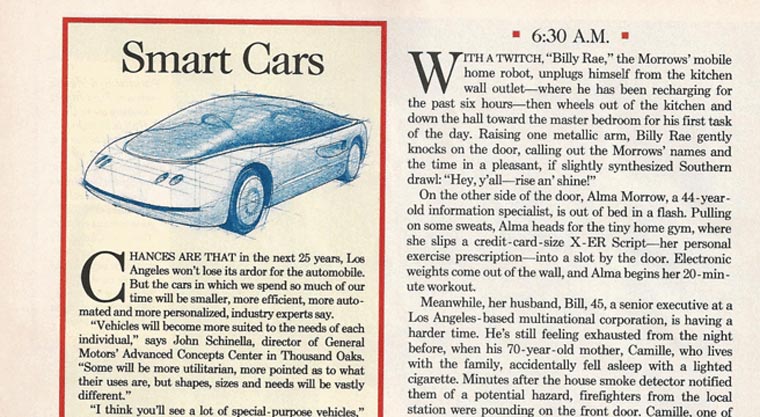 Ich liebe solche Rückblicke auf Vorausblicke. Die Los Angeles Times hat einen Artikel von 1988 komplett online gestellt, der die Stadt im Jahr 2013 skizziert. Klar, 25 Jahre sind eine lange Zeit und ich war leider noch nie selbst in LA – aber das ist wohl etwas daneben gegangen…