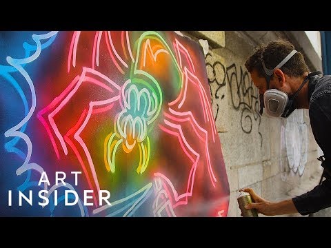 ART INSIDER zeigt uns in einem interessanten Video-Feature, wie Street Artist Straker falsche Neonröhren malt. Seine Motive bestehen nur aus Farbe, wissen aber durch gekonnte Streuung und Licht-Technik den Eindruck zu erwecken, es handele sich um Neonlicht.