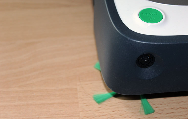 Die Erstkonfiguration des Kobold ist erstaunlich einfach. Eine mitgelieferte Drehbürste wird eingesteckt, der Filter zusammen gesetzt und hauptsächlich ist man damit beschäftigt, den Racker von Schutzfolien zu befreien. Dann drückt man auf „START“, hofft, dass er bereits etwas Energie im Tank hat – und los geht’s!