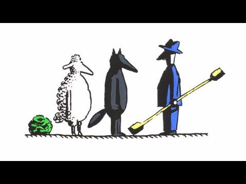 Das Rätsel: Wie bekommt man einen Wolf, ein Schaf und einen Kohlkopf auf die andere Seite eines Flusses, ohne, dass diese sich gegenseitig auffressen, wenn man immer nur einen davon im Boot transportieren kann?