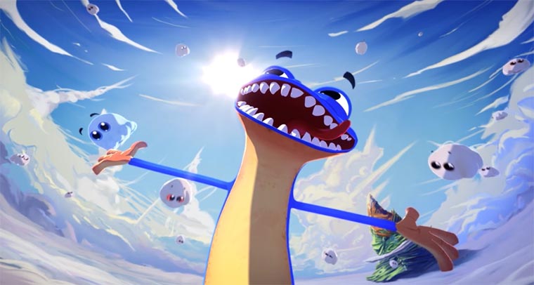 Ein Lurch, Salamander oder whatever bringt Wolken bei, Wolken zu sein. Fliegen, Regnen, Stürmen – kuriose Geschichte, zuckersüß und mit gefälligem Animationsstil verpackt erzählt. Animiert von Studenten der Art FX-Animations-3D-Schule in Frankreich. Como Hacer La Tempeta.