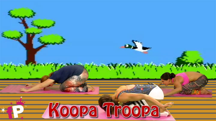 Fitnessguruin Alicia Marie hüpft mit ein paar in Gamer-Strumpfhosen verpackten Damen vor einem Bluescreen mit Spielklassikern herum, stemmt hier und da eine Tekken-Controller-Platte in die Luft und zeigt uns Fitnessübungen wie den Koopa Troopa. Oha. Endlich ein Fitnessprogramm für die Gamer da draußen. Oder „für alle, die vieeeeel mehr sitzen als sie sollten“. Gamer fragen sich wohl eher: Gibt’s das auch als Spiel? Das hätten sie doch mittlerweile gelernt haben müssen, dass nur Wii, Kinect und Move die dazu bekommen, überhaupt vom Sofa aufzustehen und die Chipstüte aus der Hand zu legen… Tz.