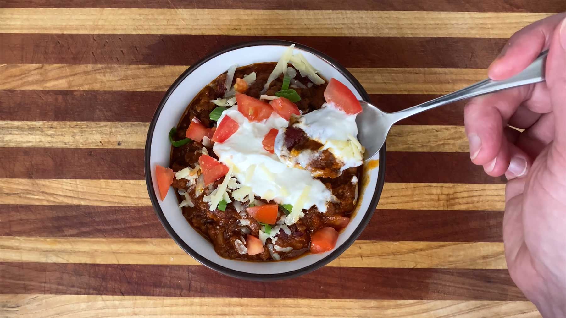 „Chili. It’s delicious. Especially when you learn to make this simple recipe yourself. Or when you manipulate a friend to make beef chili for you. Also, beans. Who knew some people feel so strongly about beans in beef chili. I did. I feel strongly that I like chili with or without beans.“