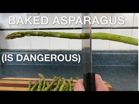 „Asparagus, while possibly the world’s most dangerous vegetable, has a quiet and peaceful disposition. Some say that baking the asparagus calms it’s temper but they are wrong. It was born calm.“