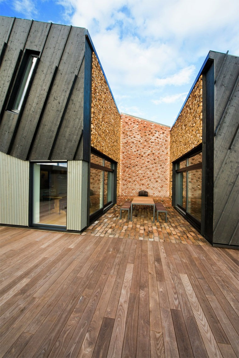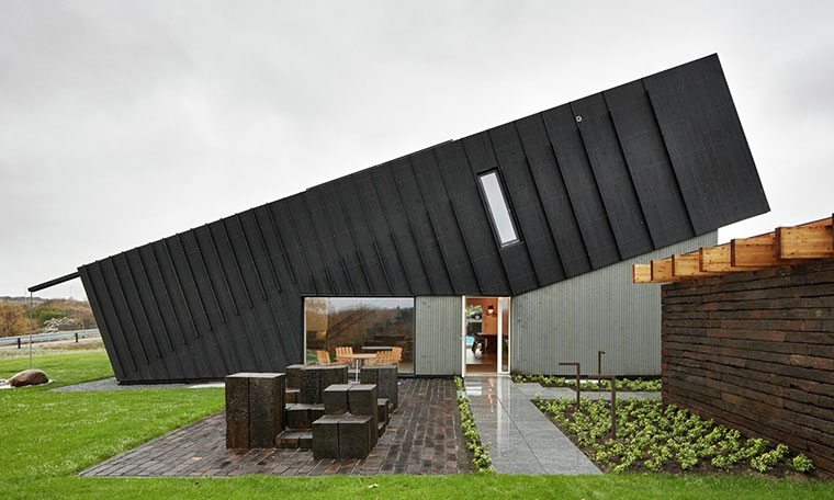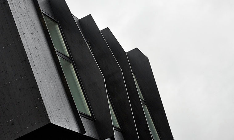 Ich musste in meinem Leben schon häufig und lange in Zimmern mit Schrägen wohnen. Kann ganz geil sein, hat aber auch recht viele Nachteile. Das ZEB Pilot House ist quasi eine komplette Schräge. Verantwortlich für die Schräge ist die Dachausrichtung gen Südwesten, um mit der angebrachten Photovoltaik-Anlage möglichst effektiv Energie gewinnen zu können. Verantwortlich für das Design: das norwegische Studio Snøhetta.