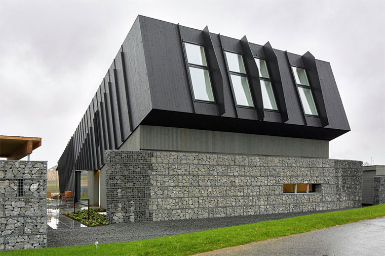 „By optimizing architectural qualities and technological solutions, the house serves both the living and energy needs of a family house, in addition to generating enough energy surpluses to power an electric car year-round.“