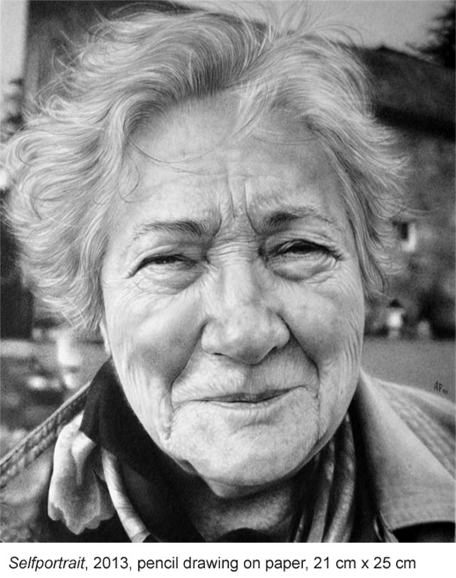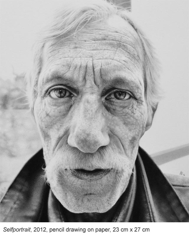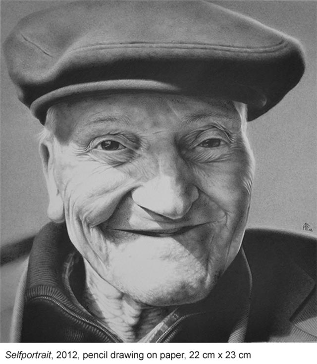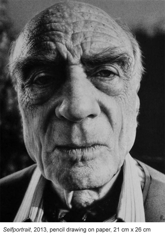Menschliche Gesichter anatomisch und perspektivisch korrekt aufs Papier zu bringen, ist vermutlich mit die schwerste Fingerübung für einen Zeichner. Der Italiener Antonio Finelli hat das aber mal sowas von raus und präsentiert uns gezeichnete Portraits älterer Herren, die kaum mehr von Schwarz-Weiß-Fotografien unterscheidbar sind. Das geht sogar so weit, dass er mittlerweile einfach Stellen auslässt, damit wir einfacher erkennen können, dass es sich um Zeichnungen handelt. Danke dafür. Dafür bin ich mir nicht so ganz sicher, ob der Gute weiß, was der Begriff „Selbstportrait“ eigentlich bedeutet…