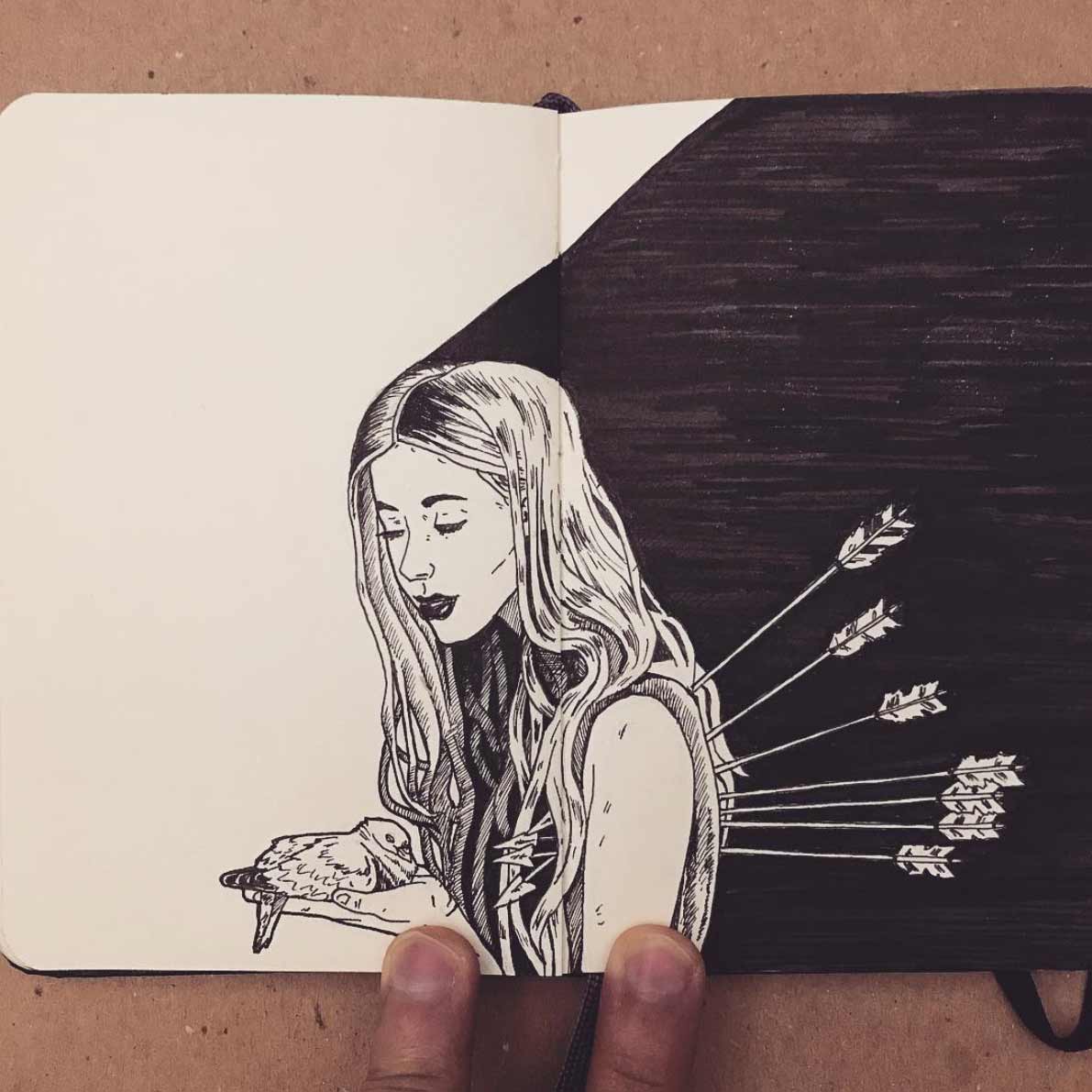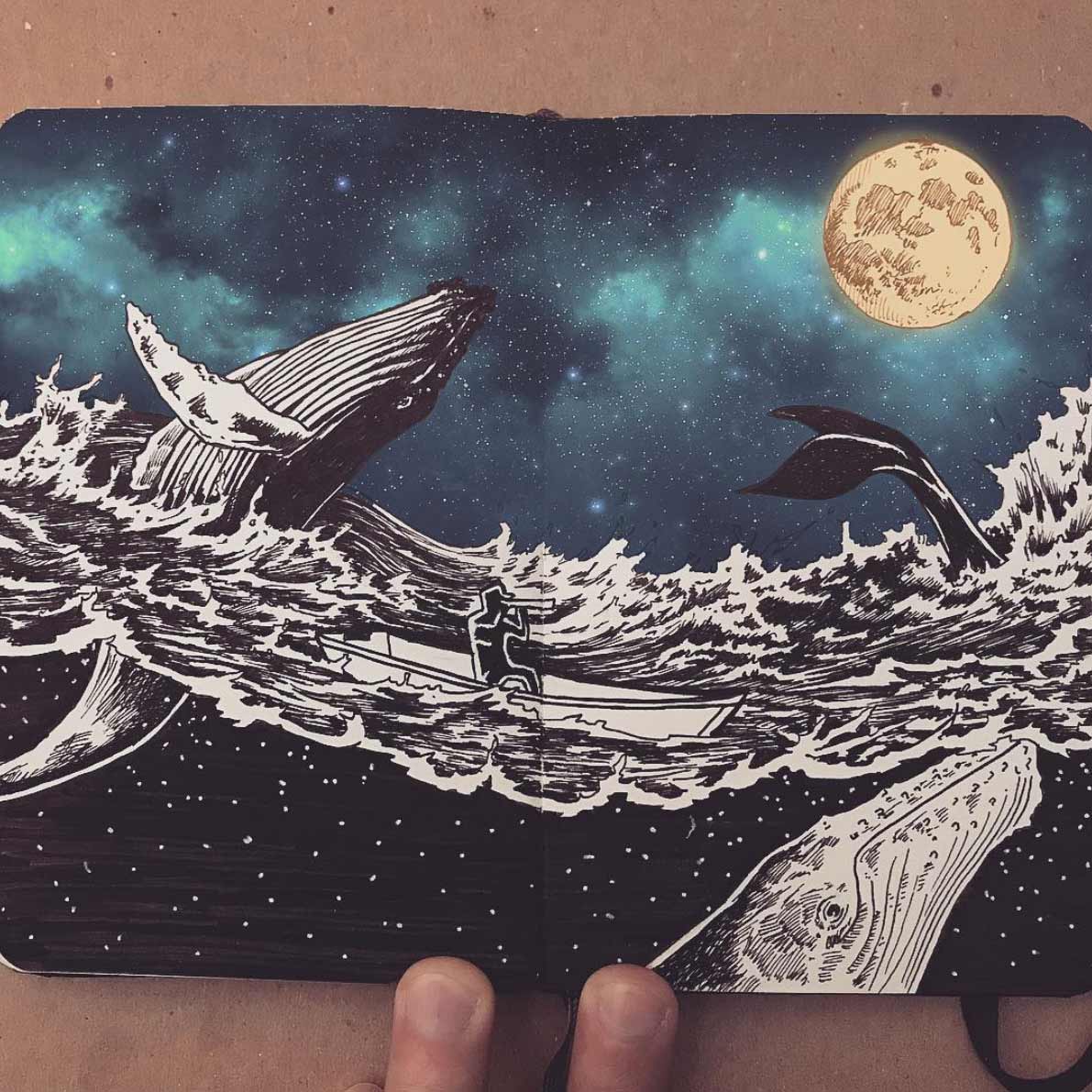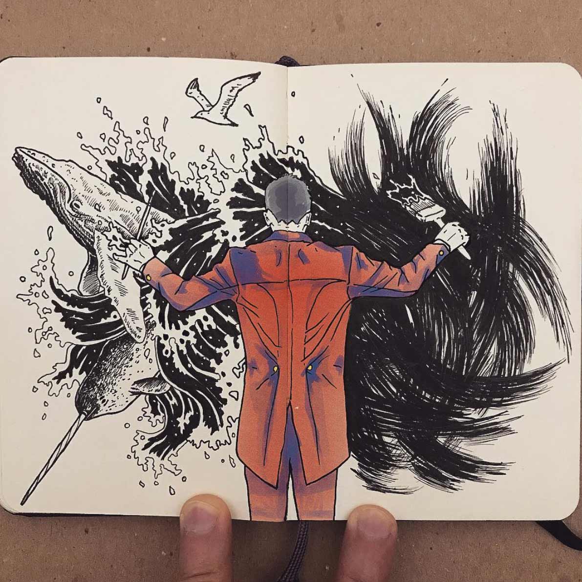 Weitere Werke Del Carpios gibt es auf seinem Instagram-Profil oder auch auf YouTube zu sehen, wo er zum Beispiel durch sein Notizbuch blättert oder Timelapse-Videos seiner Colorierungen zeigt.