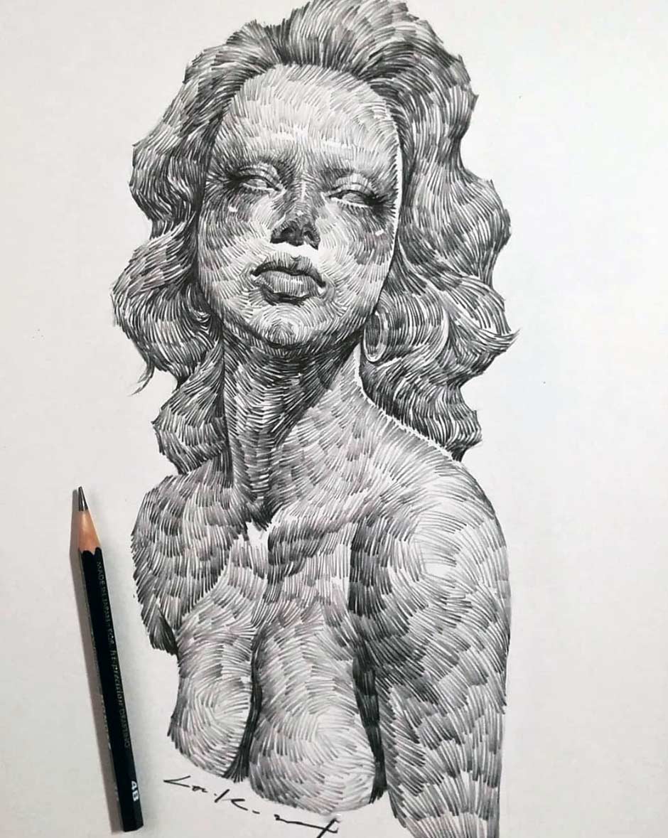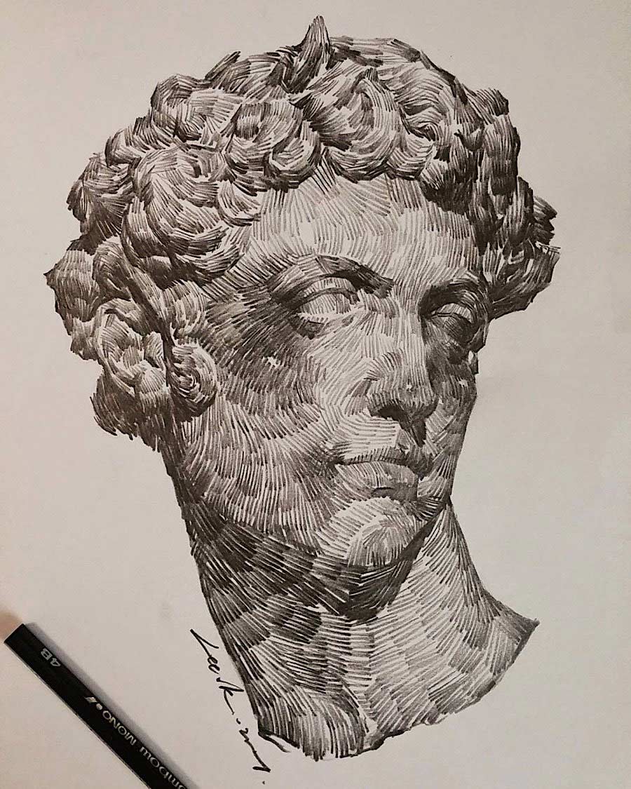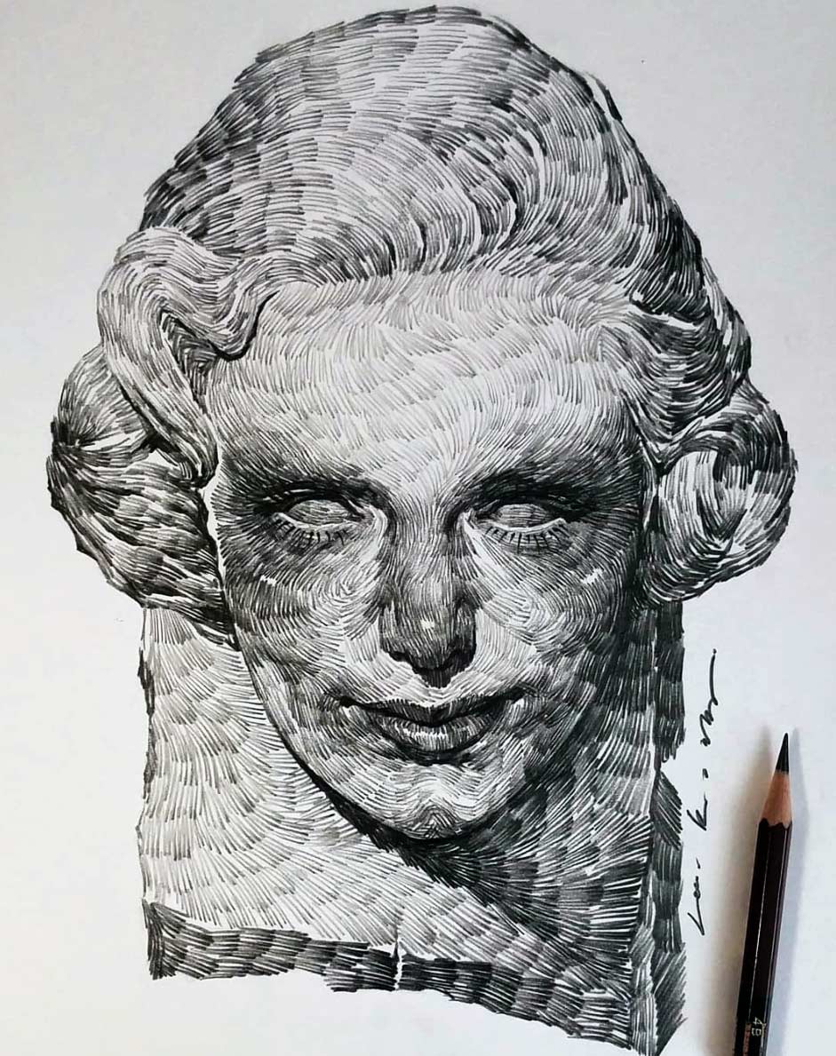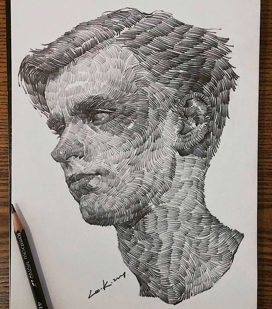 Lee.k aus Seoul erstellt wahnsinnig tolle Potraits, die mal wie wild skizzierte Zeichnungen aussehen, mal aber beinahe mosaikartig und sehr geordnet gestaltet sind. Stets im Mittelpunkt: die Linie. Mir gefallen die geordneten Motive zwar etwas besser, aber die wilden, beinahe impressionistisch zerlaufenden Bilder haben auch ihren Reiz. Hier einige meiner persönlichen Lieblingsmotive aus dem Portfolio von Lee.k.