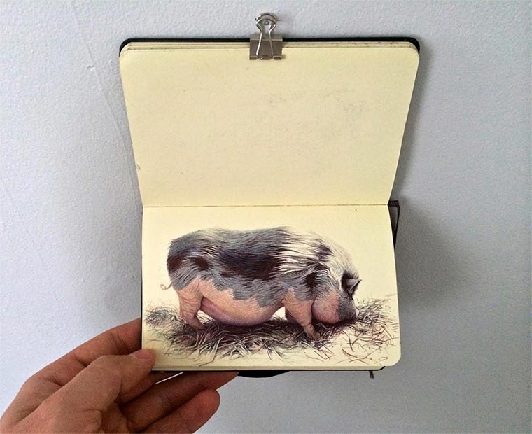 Viel viel mehr Notizbuchkunst gibt es auf der Website von Nicolas V. Sanchez zu sehen. Jesse Brass hat Sanchez vor Kurzem in New York besucht und ein kurzes Video zu Künstler und Kunst angefertigt: