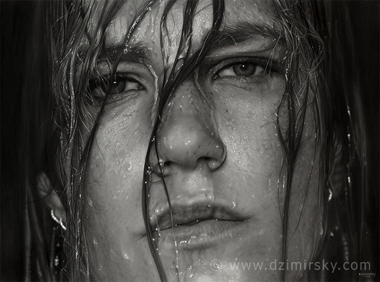 2012 hatte ich euch die hyperrealistischen Zeichnungen von Dirk Dzimirsky vorgestellt. Seitdem war der Künstler aus Bocholt fleißig und hat nicht nur etliche weitere eindrucksvolle Arbeiten erstellt, sondern auch an seinem Stil und seiner Vielseitigkeit gearbeitet. Zum Beispiel malt er jetzt auch superrealistisch. Hier ein Update seiner neueren Arbeiten.