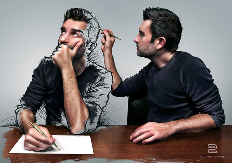 Natürlich sind die Fotos nicht unvollendet. In der Serie The Sketch of a Life zeigt uns Fotograf Sébastien Del Grosso jedoch, dass man durchaus Teile der Bilder mit gezeichneten Elementen ersetzen kann. Kreative Idee und sehr gute Umsetzung.