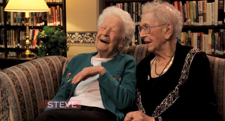 Steve Harvey hat in Amerika eine eigene Show. Darin hat er zwei 100-Jahre alte Damen gefunden, die seit 94 Jahren befreundet sind. Best Friend Forever im wahrsten Sinne des Wortes! Die beiden sind noch richtig zackig auf Draht, so dass sie natürlich keinerlei Probleme haben, über neumodische Dinge wie Selfies, Twerking oder Justin Bieber zu sprechen. Herrlich!